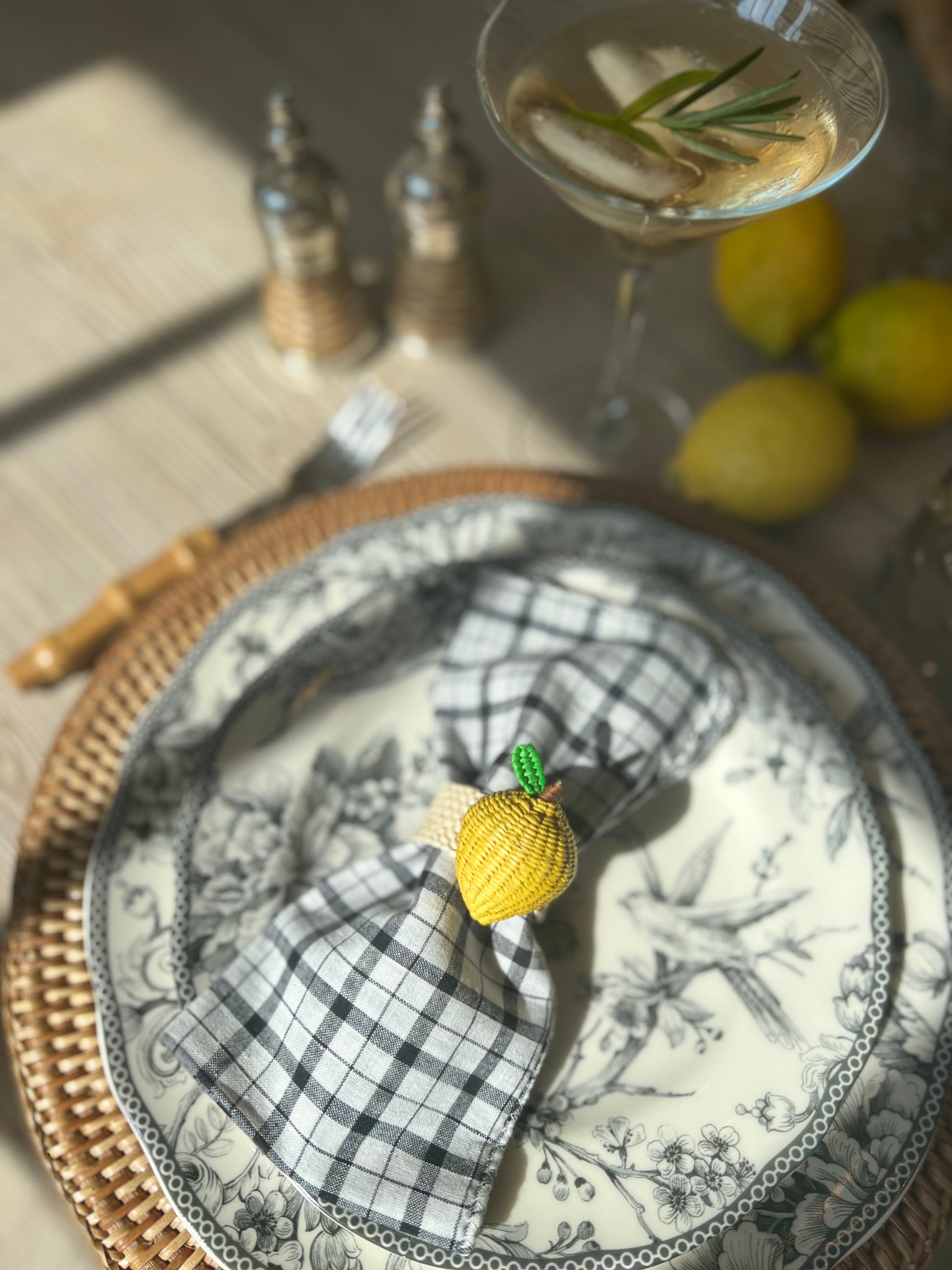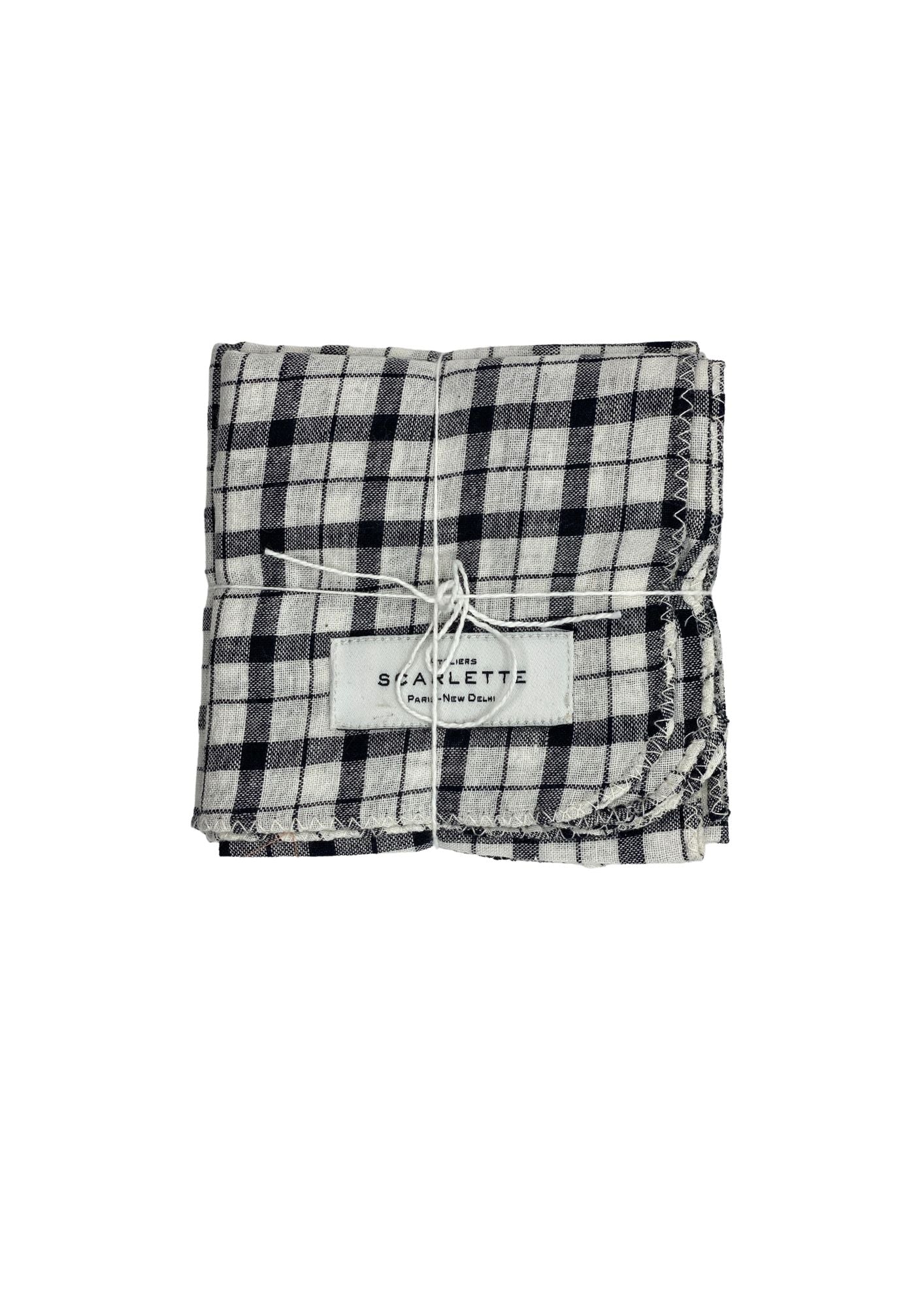 Set of 4 elegant black and white plaid napkins made of very soft and light Khadi cotton spun and then woven by hand on wooden looms in the Bengal region.