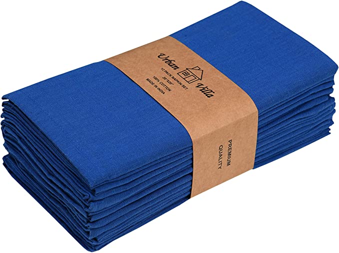 Elevate your dining experience with Urban Villa's Solid Slub Set of 12 Dinner Napkins, boasting a vibrant and eye-catching royal blue color. Crafted from 100% cotton, these oversized cloth napkins (20X20 Inch) bring a touch of luxury to your table setting.