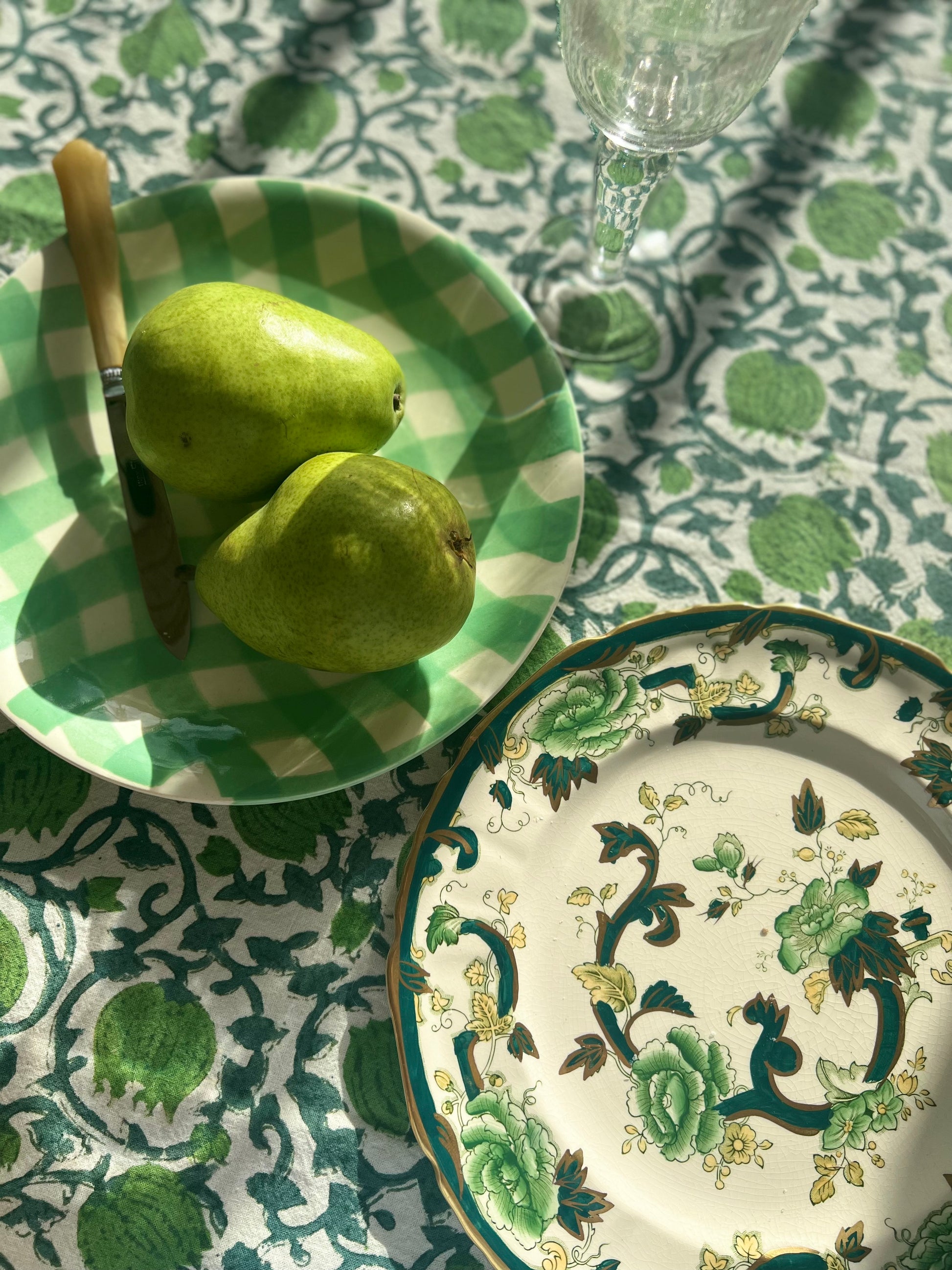 Vintage English Transferware Masons Floral and Vine Chartreuse Dinner Plate