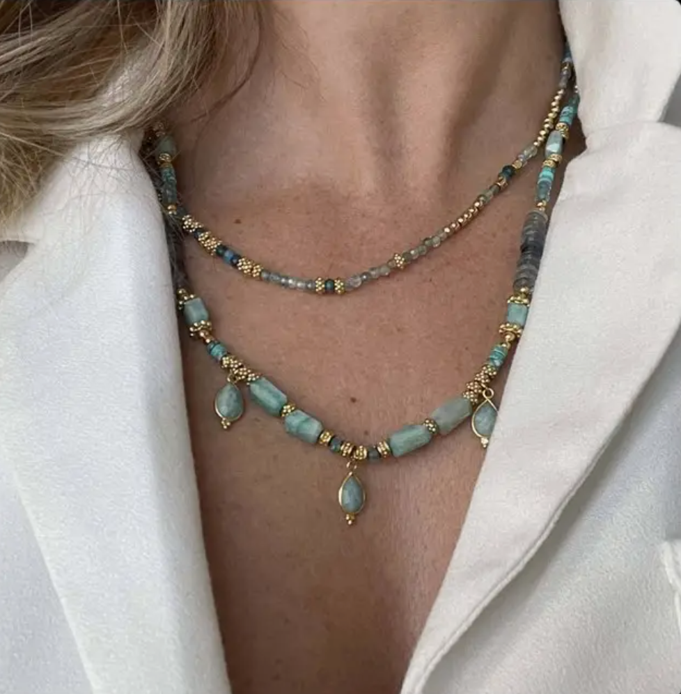 Each jewel is assembled with care, patience and meticulousness, by hand, in a workshop in Nantes. Due to their handcrafted design from natural semi-precious stones, all unique, slight differences in size, shape and color may occur.